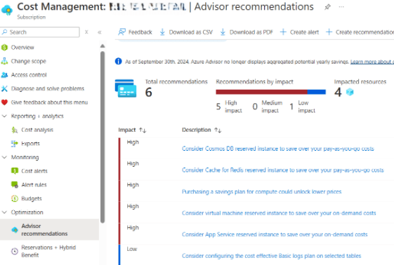 • Azure Advisor – its there, on every resource you are running in Azure and also as its own page in the portal, giving you recommendations based on over/under consumption and how you can address this.
