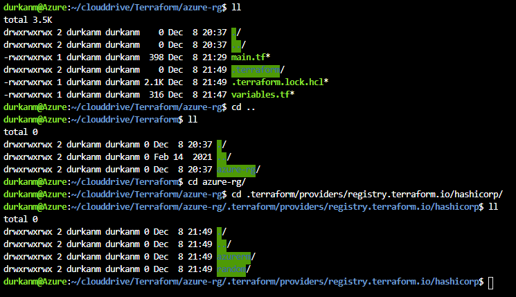 I we run an ll now, we can see there is a .terraform directory available, and if we drill down we can see that this has downloaded the providers for us: