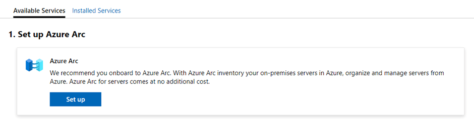 Once we have onboarded to Azure Arc, we scroll down and see a number of other services available to us: