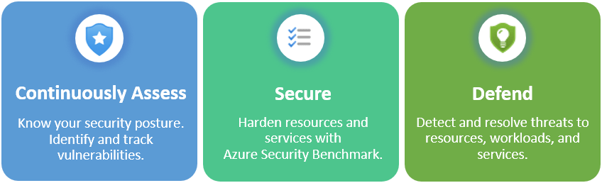 - Defend: Detect and resolve threats to those resources and services, which can be sent as email alerts or streamed to SIEM (Security, Information and Event Management), SOAR (Security Orchestration, Automation, and Response) or IT Service Management solutions as required.