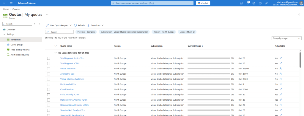 Every new Azure subscription starts with a set of default quotas which are conservative by design. A brand-new subscription is an unknown quantity from Microsoft’s perspective — there is no history of usage, no established relationship, and no predictable demand profile. The defaults are low enough to allow experimentation and initial deployments without pre-allocating significant regional capacity to a subscription that may never use it at scale.