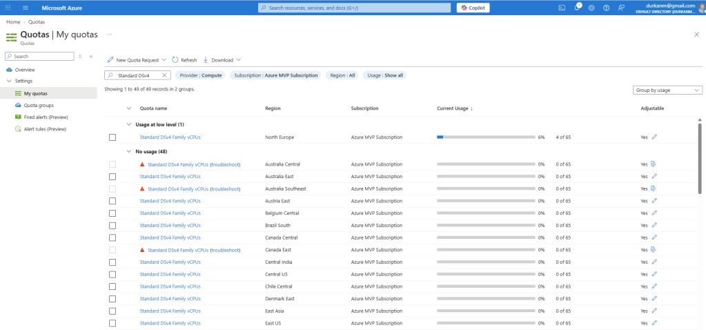 One of the most important things to understand about quotas is that they are regionally scoped. A quota for Standard Dv5 vCPUs in West Europe is entirely separate from the same quota in North Europe or East US 2. This is the physical reality of how Azure regions are built and operated.