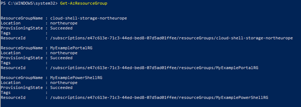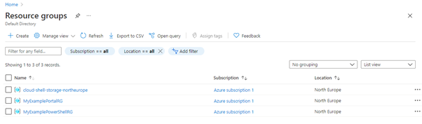 New-AzResourceGroup -Name MyExampleARMRG -Location northeurope