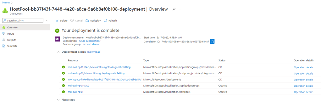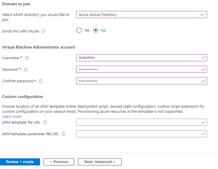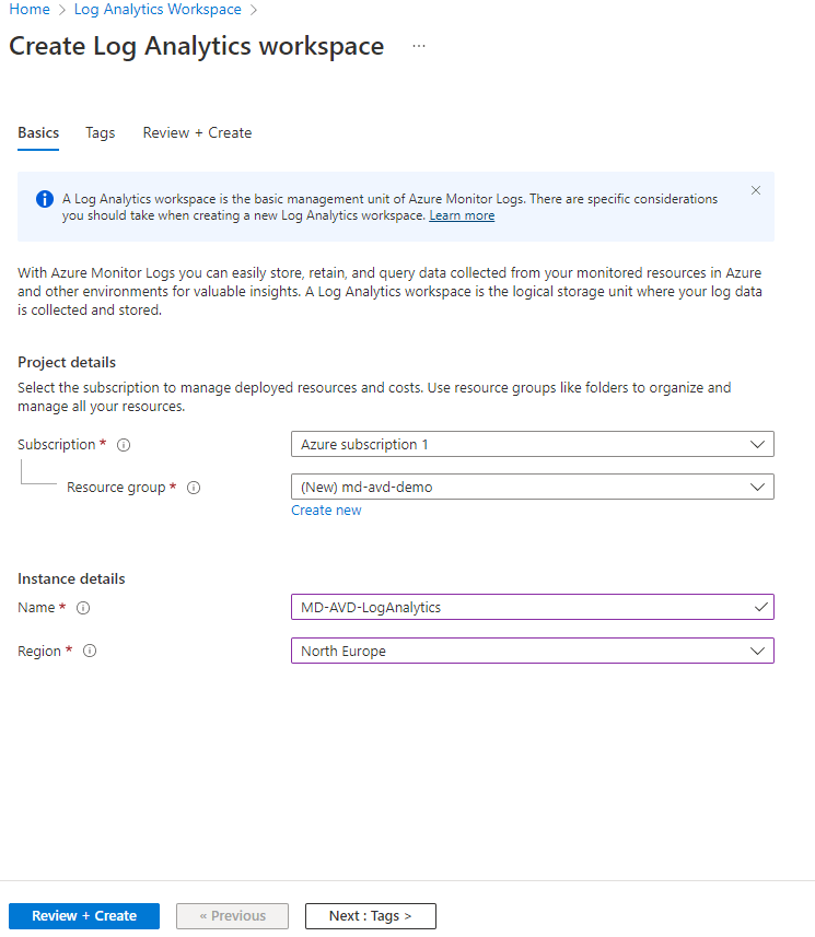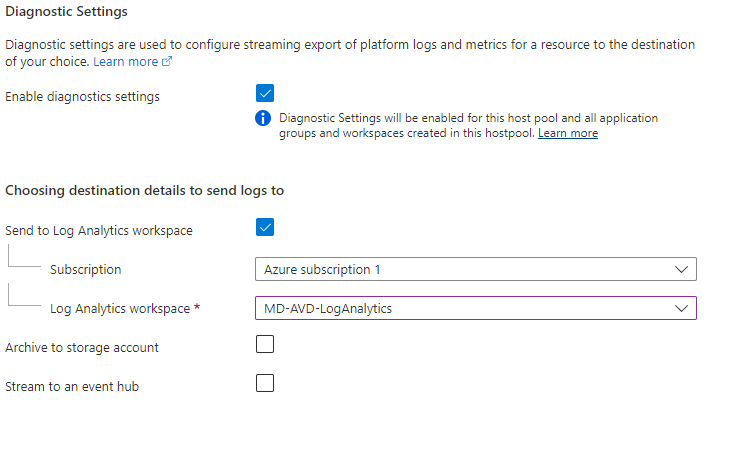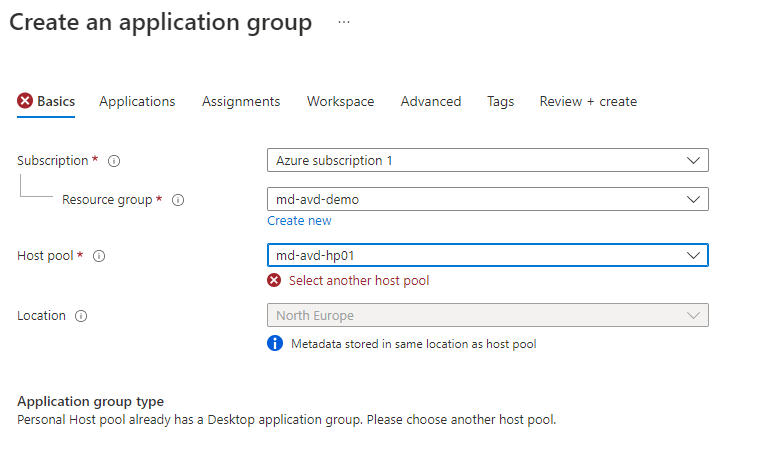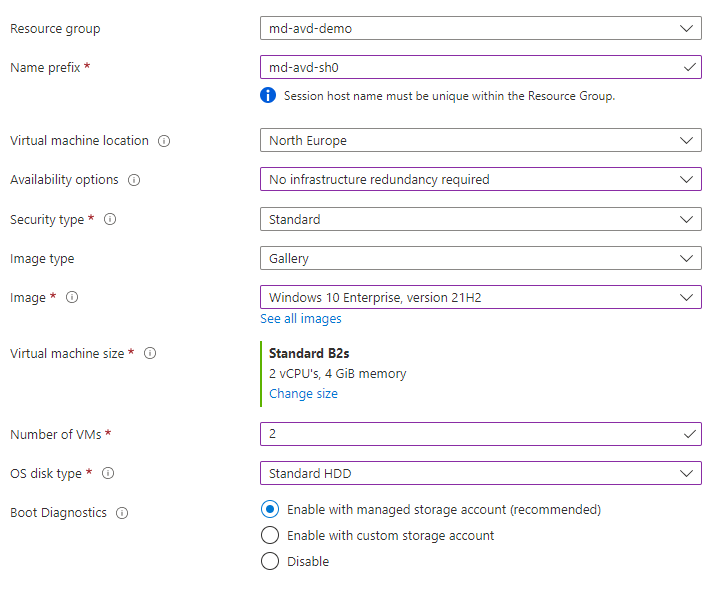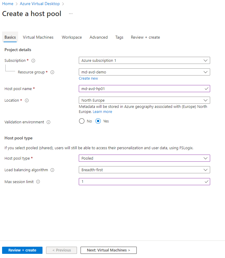 - Location (remember this needs to be in the same region as your Host Pool)