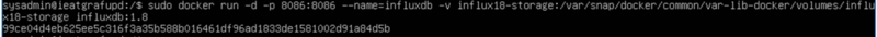 At this point, I’m ready to run the image. But first, lets create another persistent storage area on the host for the InfluxDB image, just like I did for the Grafana one. So we run sudo docker volume create influx18-storage: