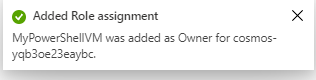 I click “Review and Assign” to confirm the role assignment, and this is then confirmed: