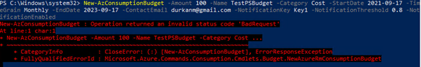 - In Azure Cost Management + Billing, navigate to Budgets, select your subscription, and create a new budget.