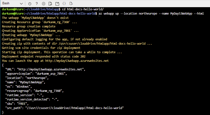 az webapp up --location northeurope --name MyDay53WebApp --html