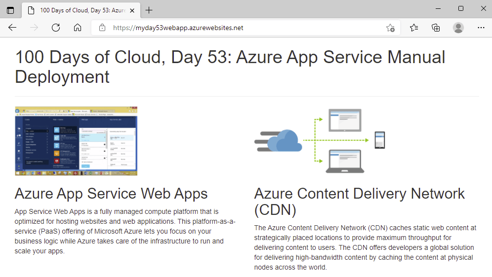 Its Day 53 of my 100 Days of Cloud journey, and today I’m going to deploy a Web App using Azure App Service using both manual and automated deployment methods.