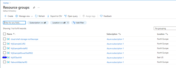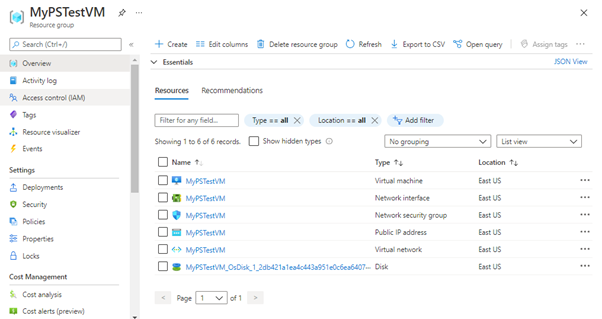 So I’m going to delete the entire Resource Group from the default “MyPSTestVM” deployment as I don’t want to keep paying for it: