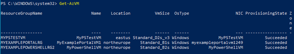 OK, so all I need is the Resource Group and the VM Name it seems. From the output to “Get-AzVM” above, the name of my VM is “MyPowerShellVM”. So I’ll run: