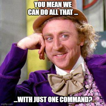 That’s right Mr. Wonka, just one command will do it all. There’s a lot of options we need to be aware of though, so let’s jump into PowerShell and take a look.